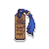 - A thin wooden piece with a tassel accessory. A verse from The Chosen One scripture is engraved on the exterior.